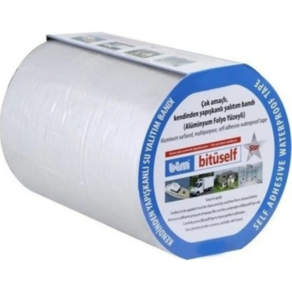 Bitüself Star kendinden yapışkanlı su yalıtım bandı, 10-15-20-30-60 cm eninde , 10 m boyunda rulo halinde ambalajlanır.
