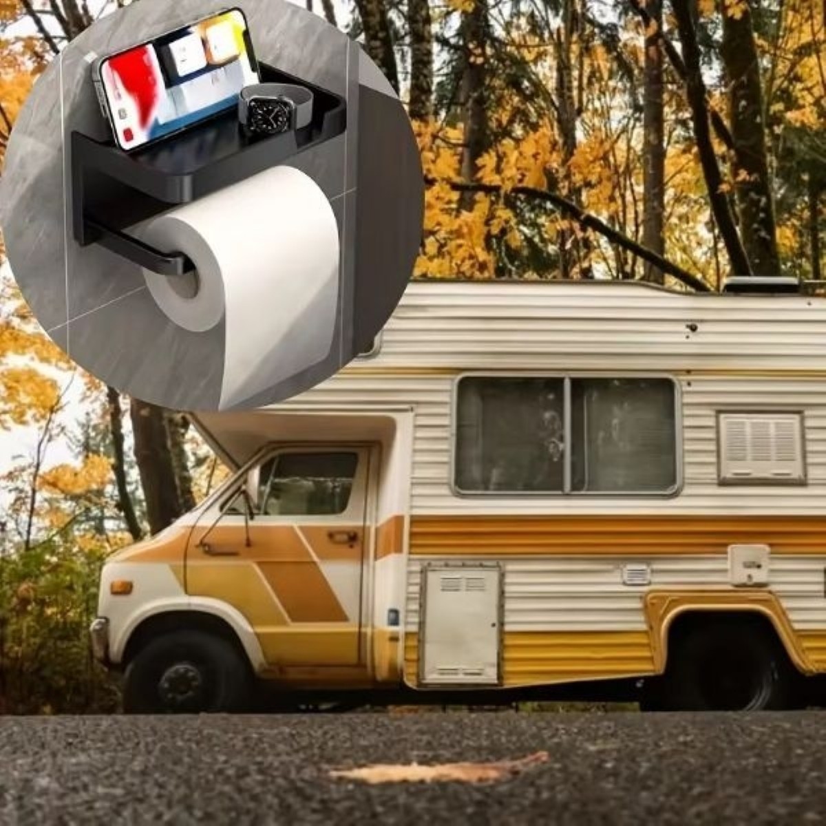 Telefon, küçük eşyalar ve kağıtlık tek bir noktada toplanır; banyoda dağınıklık azalır, düzen artar.